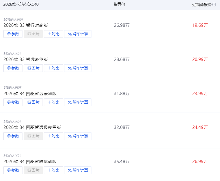 现在的2026款XC40指导价是26.98万起,虽然终端优惠很大,但门槛还是在那摆着。