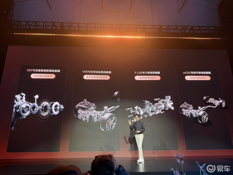 内饰延续了以驾驶者为中心的环抱式座舱设计,仍然采用双屏互联的布局,整体造型也将以突出运动感为主,用料丰富层次感强烈。车机内置高通骁龙8155芯片,保证了车机系统的流畅响应。元神AI大模型的加入进一步提升了车内的语音交互能力,也让其智能化水平在燃油车阵营中脱颖而出。平底式多功能运动方向盘采用真皮打孔设计,后方配有换挡拨片,并设有驾驶模式控制按键,与一体式运动座椅共同烘托出强烈的驾驶欲望。此外,新车还配备了BOSE音响、256色氛围灯、前排座椅加热/通风等豪华配置,兼顾了运动感与舒适性。