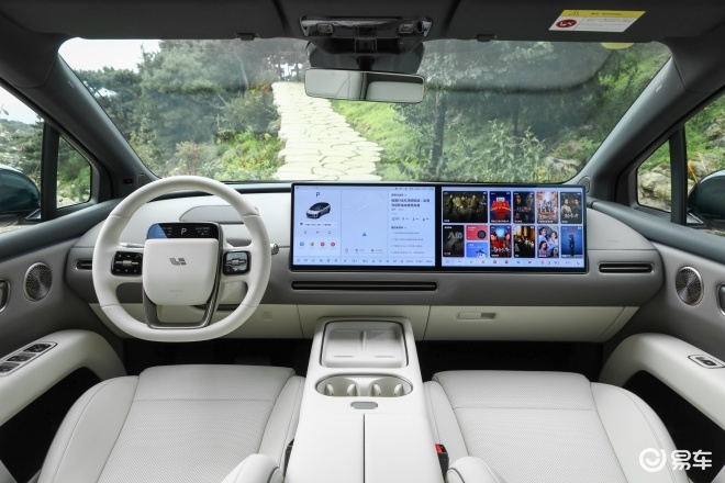 内饰都是简约豪华风,只是核心亮点各有侧重。理想i6的座舱核心是3K双联屏,再加上后排21.4英寸的3K显示屏,智能交互感很足。中控布局整齐,对开式中央扶手箱摸起来软软的,手肘靠上去很舒服。车机有双AI引擎加持,四区域语音唤醒、连续对话都不在话下,甚至“打开这个车窗”这种模糊指令都能精准响应,日常用着特别省心。