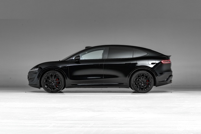 智界R7纯电版的大灯很有特点,是由170颗星点光源组成的水滴状款式,搭配贯穿式LED灯带,车顶还装了192线激光雷达和辅助驾驶小蓝灯。轮毂标配20英寸双五辐款,再加上黑色侧裙饰板,让车辆看起来更运动。车尾是贯穿尾灯配小鸭尾,而且前备厢是电吸电弹的,使用起来更顺手更便捷。
