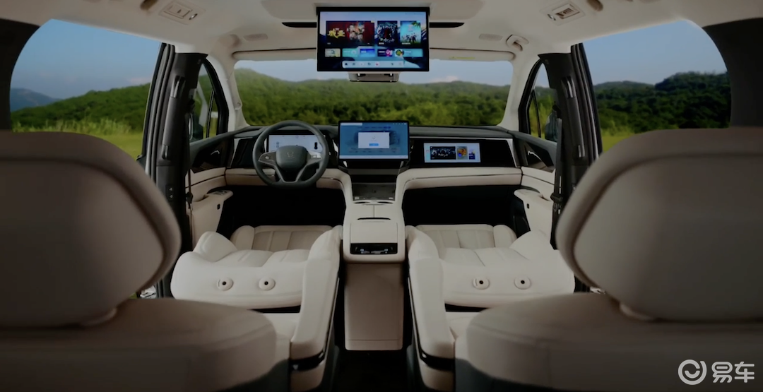 内饰部分是2026款夏的升级重点。新车采用了三屏联动布局,包括15.6英寸自适应旋转悬浮中控屏、12.3英寸全液晶仪表盘以及12.3英寸副驾娱乐屏,并搭载了智能座舱高阶版DiLink 150系统。车内采用“2+2+3”的七座布局,第二排为头等舱座椅,支持四向电动调节、通风、加热、按摩等功能。通过“魔方”空间变换技术,副驾可一键变成舒享躺椅,第三排座椅支持电动折叠与翻转,在4座模式下后备箱容积可扩展至2036升,秒变大床房或娱乐空间。舒适配置上,二排配备了冷暖冰箱(制冷可达-6℃,制热可达50℃),全车搭载28个扬声器的高品质音响系统,支持杜比全景声。智能驾驶方面,高配车型搭载了“天神之眼B”激光雷达辅助驾驶系统,配备30个智能传感器,支持高速和城市领航辅助驾驶以及全场景智能泊车功能。
