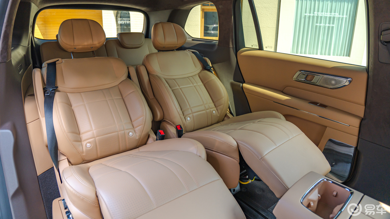 进入第三排,其实才是深蓝S09与其他六座SUV真正出现差异化的地方。深蓝S09的第三排可以有877mm的腿部空间,座椅也足够宽大柔软,完全没有坐小板凳的既视感。配合电动靠背调节,身高170cm的成年人也完全可以在第三排葛优躺,这使得第三排不再是应急之需,而是真正可以长时间乘坐的舒适座椅。另外第三排座椅也有扶手、杯架以及加热功能等等,唯一的问题是第三排没有顶棚拉手。