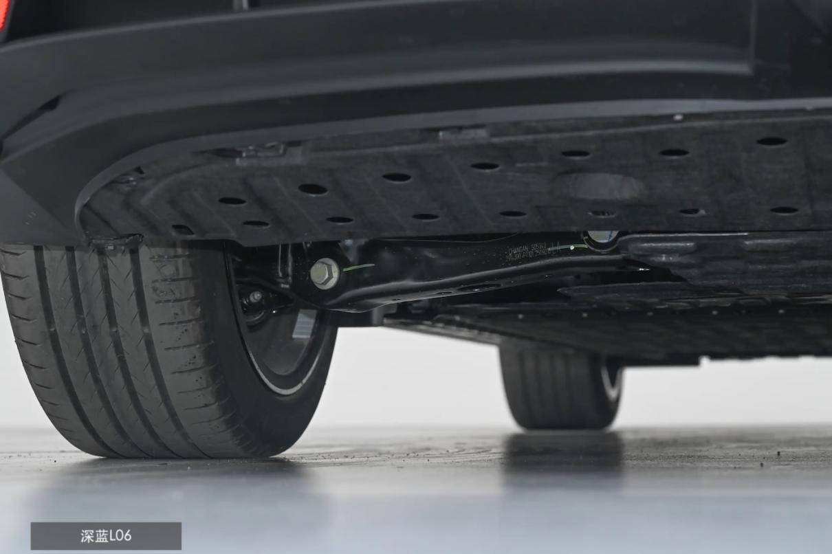 深蓝L06作为一台B级车,它除了有比较有利于驾控的后置后驱布局外,还用上了前桥麦弗逊式独立悬架+后桥五连杆式独立悬架的组合。四轮独悬除了能更好地应对连续颠簸,也能在大弯道、湿滑路面等场景保持得更稳,加上后驱布局也带给年轻用户多一些操控乐趣。