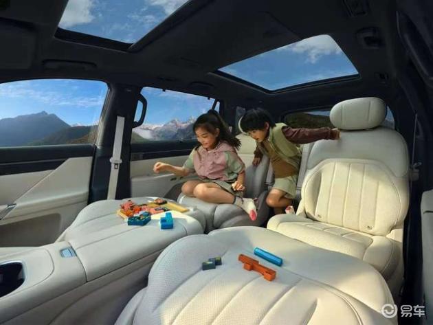 坐进车内,首先被大面积的云感亲肌超软材质所吸引,覆盖面积达18平方米,触感柔软细腻,大幅提升了内饰质感。车内采用2+2+2的真三排大六座布局,180毫米宽的扶手间过道设计,无论是老人还是小孩,都能轻松上下车。二排右侧的零重力座椅是一大亮点,支持十向电动调节、三档通风加热,10点式按摩力度与面积均提升30%,开启后仿佛置身于飞机头等舱,有效缓解旅途疲劳。