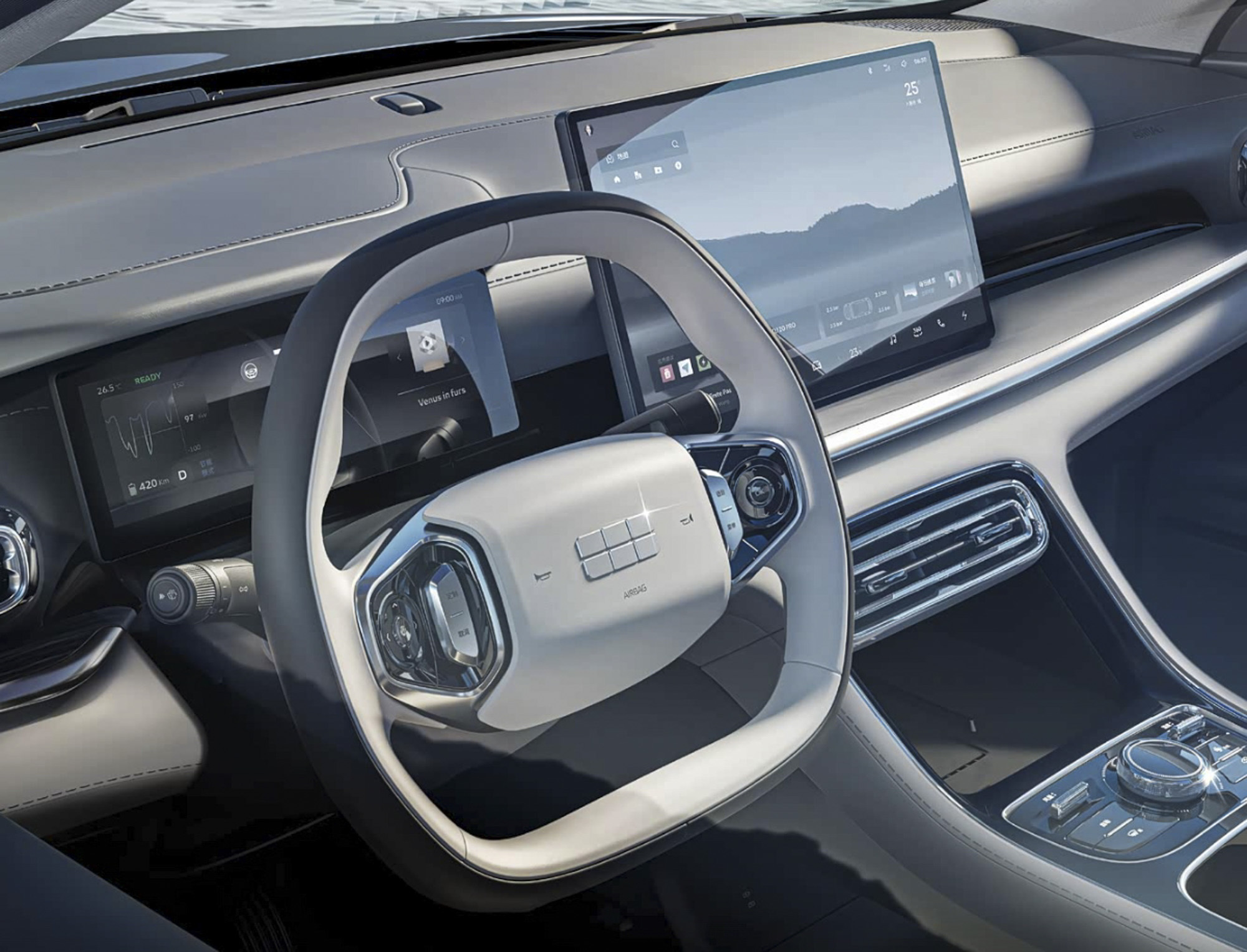再看智能化,星耀6配了一套14.6英寸中控大屏+10.25英寸液晶仪表的Flyme Auto智能座舱,背后是亿咖通自研的安托拉1000平台和7nm龍鹰一号芯片,功能包括无界空间、AI语音助手、手车互联等等。顶配还给到千里浩瀚H3辅助驾驶,硬件堆料够狠,支持城市/高速NOA、自动泊车、紧急避让,算力128TOPS的芯片也没少下本。