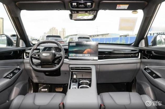 吉利博越的内饰设计符合大众审美,呈现出典型的新能源座舱风格。四幅式多功能方向盘采用平底设计,结合钢琴烤漆和磨砂工艺,按键反馈柔韧,握持手感扎实,配合前端长条形液晶仪表,兼顾了舒适性和精致氛围。这种体验在三年前的价格区间内通常需要13万元才能获得。此外,前排座舱大量使用高档工艺材质,门板内侧采用大面积钢琴烤漆饰板包覆,搭配镀铬饰板和软包缝线设计,营造出低调而高档的座舱质感。