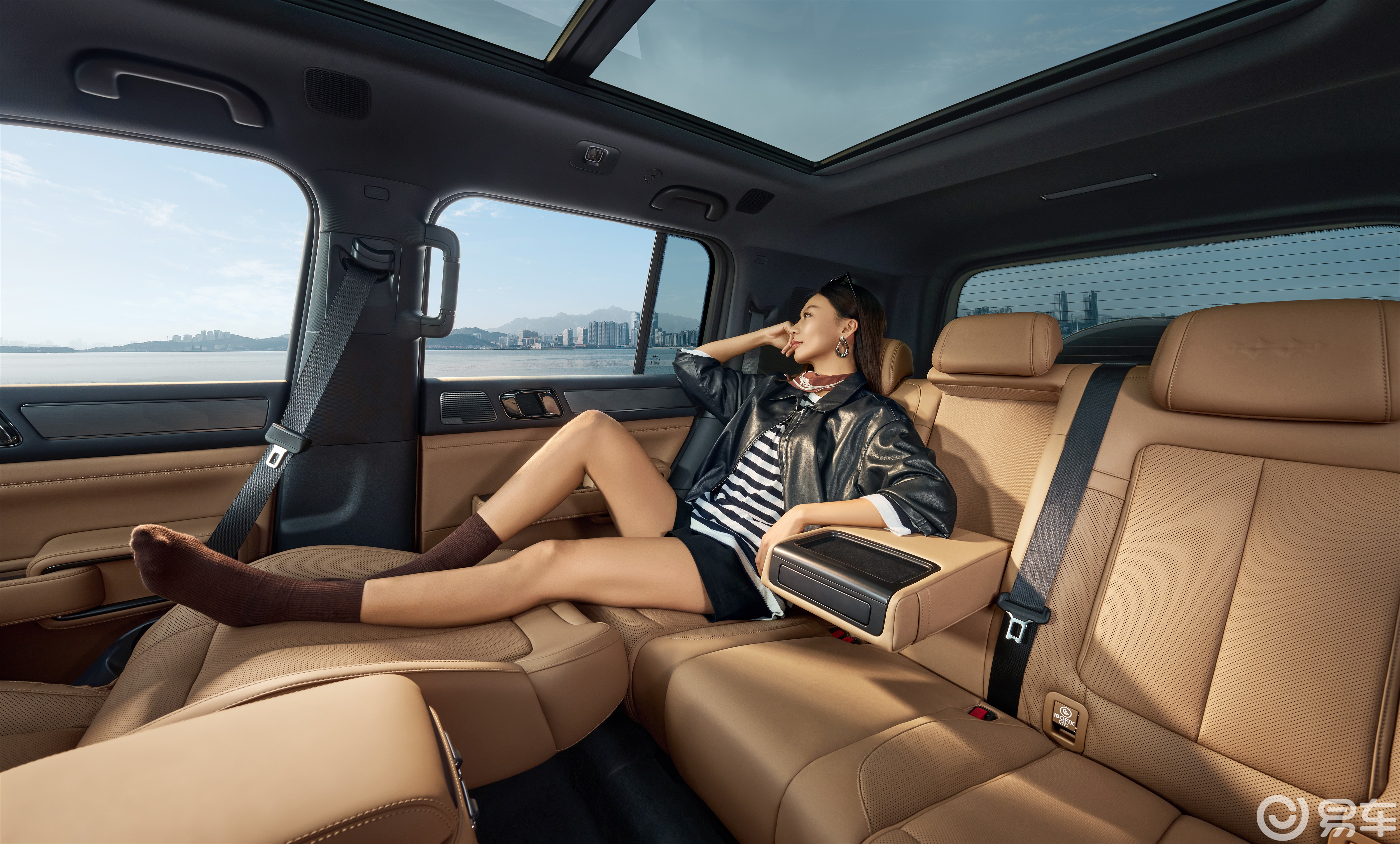 豹8以大五座布局重构旗舰SUV空间逻辑,后排腿部与后备箱空间双双扩容,搭配多向大腿托与双开门冰箱。作为首款获C-NCAP五星认证的混动非承载车型,其智能网联系统亦按C-ICAP五星标准开发,树立“物理+智能”双安全标杆。