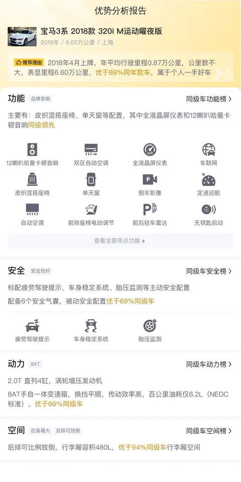 综上所述的新车含税价、用车成本、市场行情、优势分析、同款比价等数据仅供参考。在配置部分,因为二手车非标品,车辆可能会存在配置改装的情况,具体车况信息需要线下结合车辆实际情况进行综合参考。