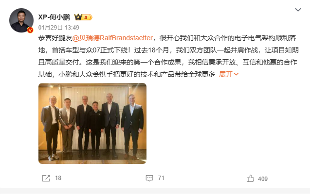 与众07正式下线!小鹏助大众新能源弯道超车?