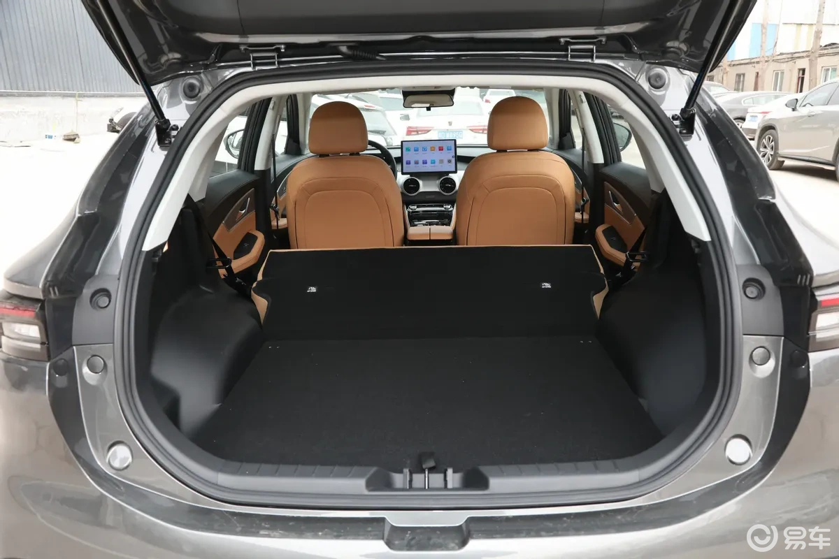 侧面采用哑光饰条点缀侧窗,搭配传统机械式门把手,相比隐藏式方案,在低温、雨雪环境下可靠性更高,更贴合家用场景;低配为17英寸低风阻轮辋,高配为18英寸轮辋,在能耗与视觉之间取得平衡。车尾配备扰流板与高位刹车灯,贯穿式尾灯为当下主流设计,夜间行车安全性与辨识度都有保障。