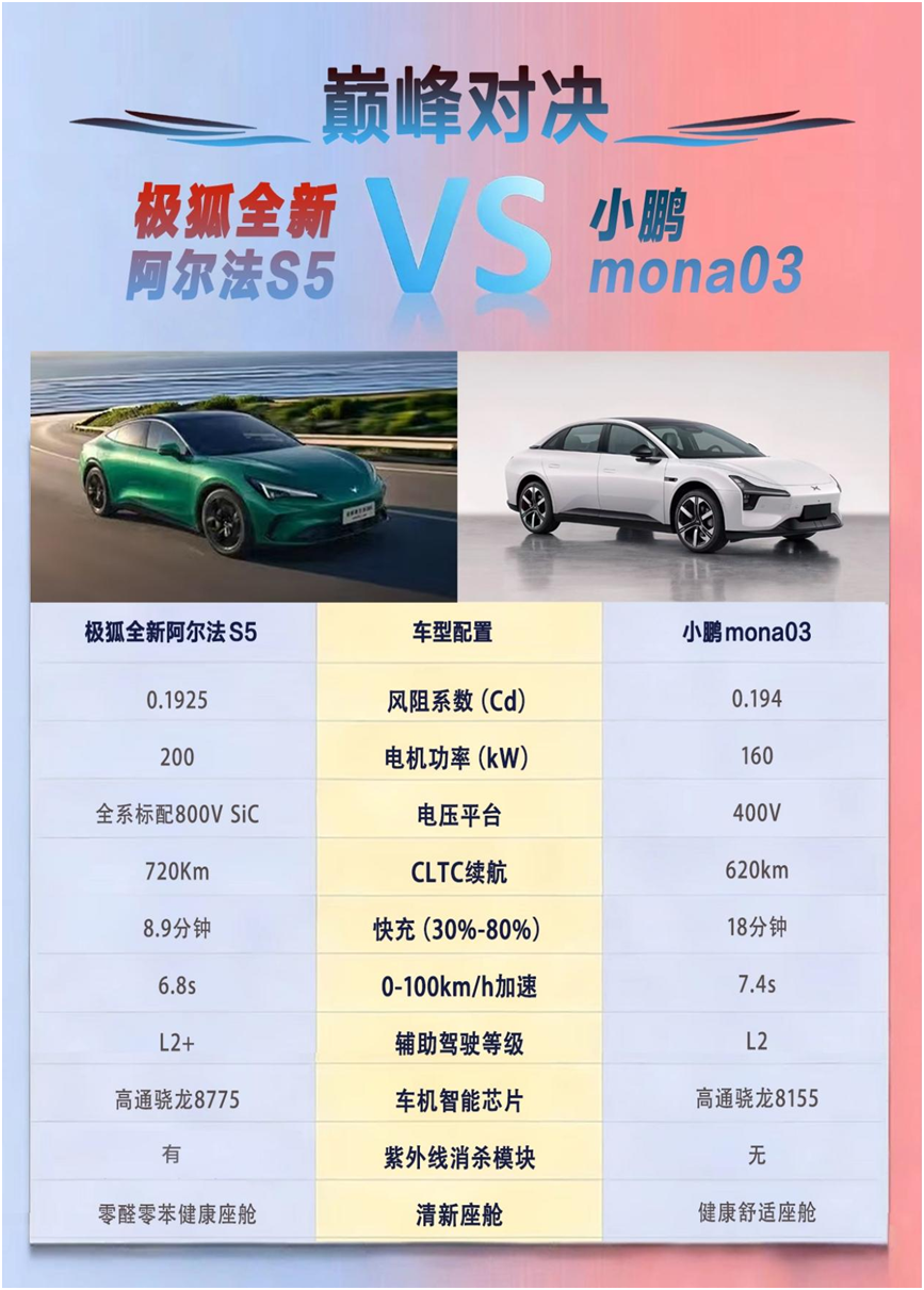 选择极狐全新阿尔法S5与小鹏MONA03启源A06的对比