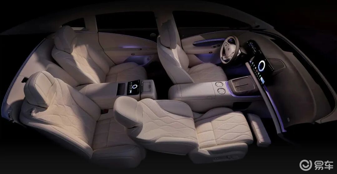 在内饰上,昊铂A800有三种主题色调,空间布局采用全球首创的后排2+1变形座椅,中央座椅可向外翻转,变成一个集成了扶手屏和折叠桌板的“智慧中岛”,从而实现五座与四座模式的自由切换。