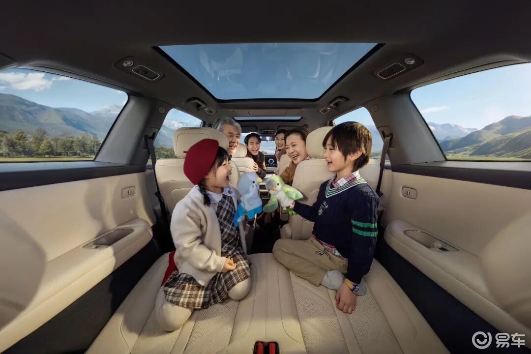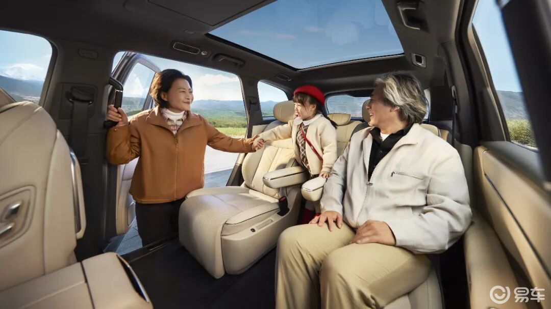 2+2+2的六座布局下,第二排是独立航空座椅,预留了190mm的超宽二三排过道,搭配纯平地板和中排辅助拉手,老人和孩子进出第三排不用弯腰侧身,不用像很多车型那样,费劲地把第二排座椅掀起来才能进出。
