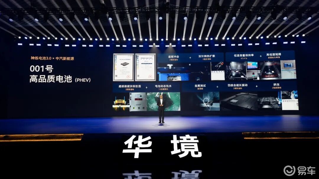 三电安全,华境S也做到了同级别第一梯队的表现。新车搭载的神炼电池3.0,采用了宁德时代超级增・混电芯,打造了独有的系统级五“零”安全体系,官方公布的实战记录已经达到766亿公里零自燃。裸电芯抗1500J底部撞击(10倍新国标能量)仍不起火,四大串行测试超越国标,拿到中汽新能源001号验证证书,打消了家庭用户对于电池安全的顾虑。